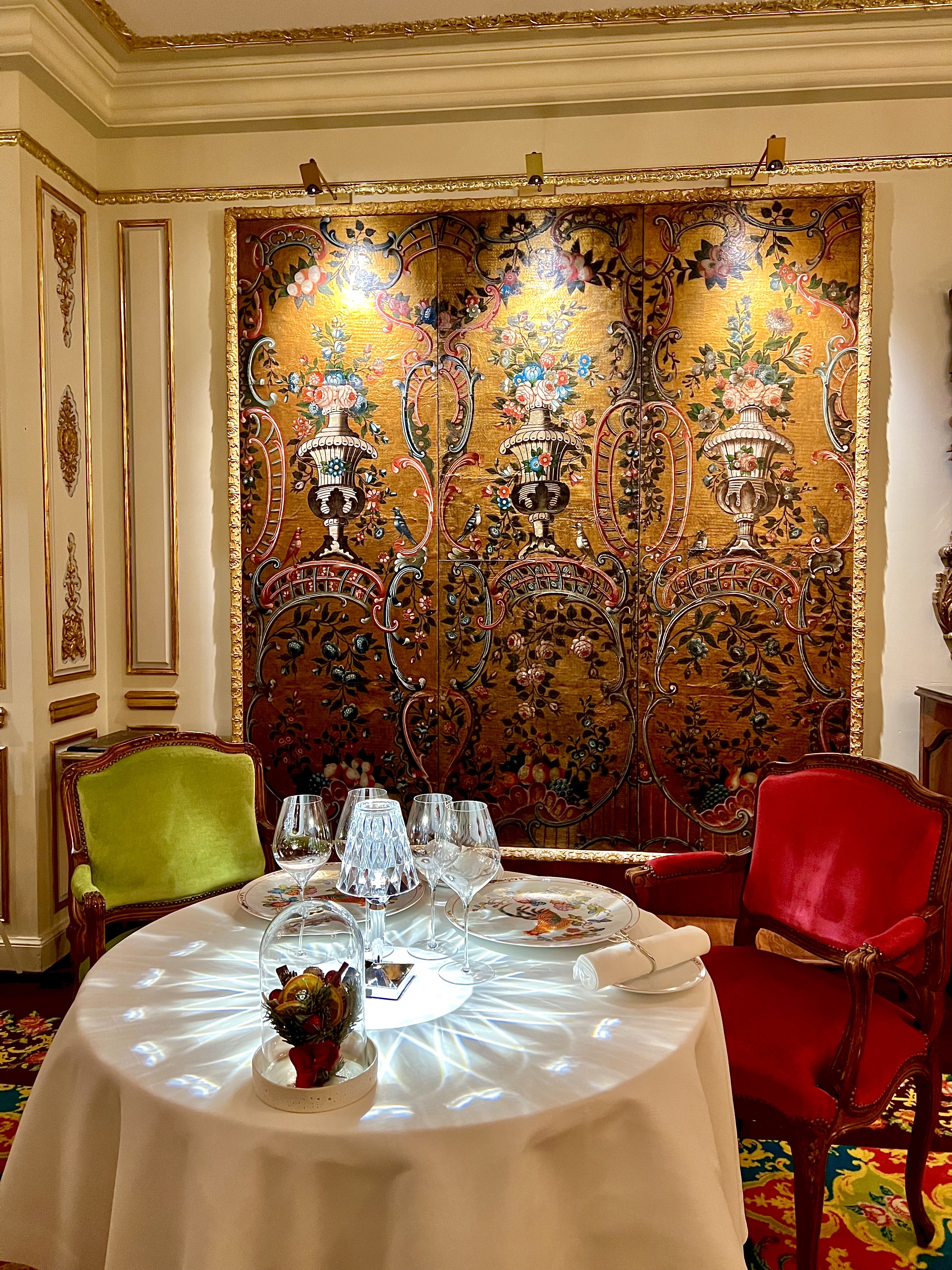 The food and wine pairing proposed on the menu is a fabulous journey through the richness of France’s vineyards and beyond, perfectly timed and told with emotion by the sommelier team. The wine book is a veritable compendium of in-depth references.