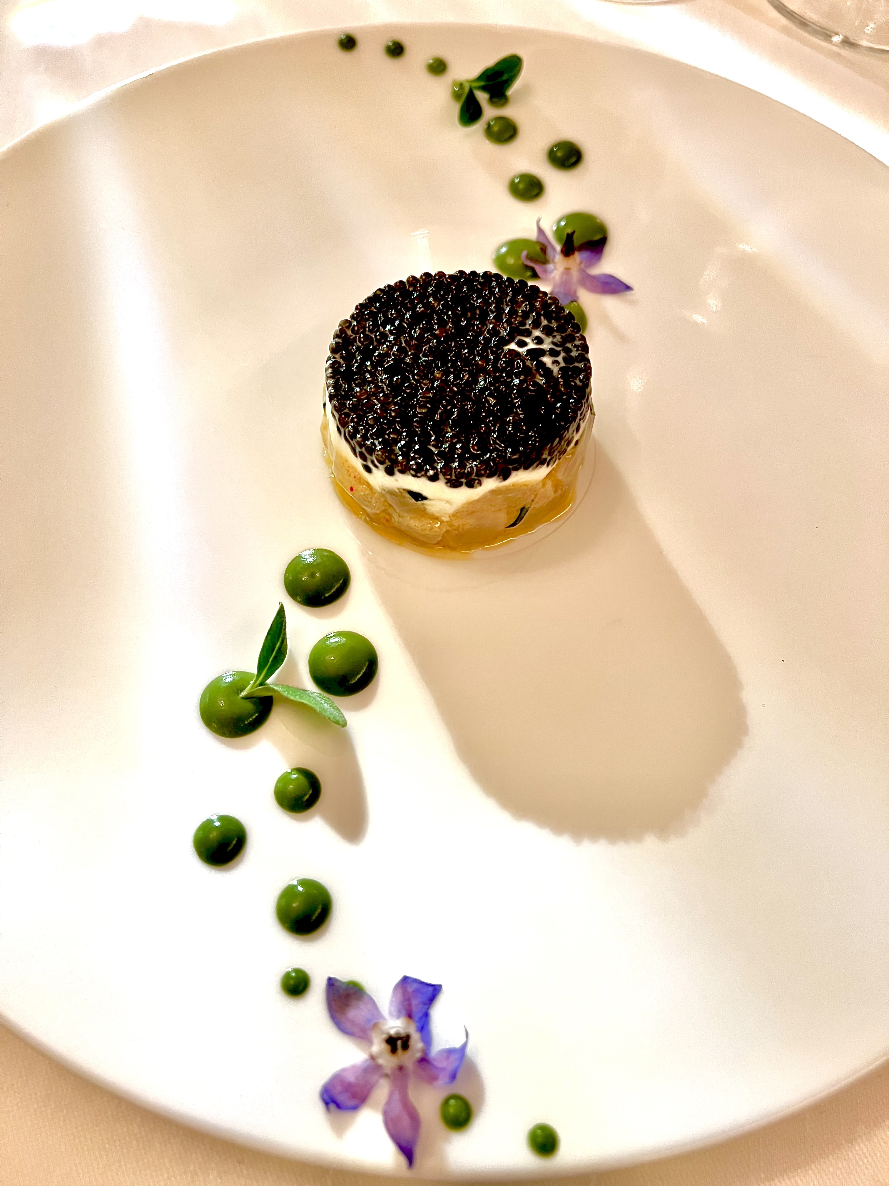 Wild Mediterranean sea bass and Normandy oysters in tartare, lemon cream and Sologne caviar: a signature dish from the chef who wonderfully tells her story, her love of the sea (whether Mediterranean or Channel) and fine products . The plate is refined, chiseled and readable, not convoluted, it goes straight to the flavors in the mouth and touches the heart. The iodine is mastered with precision and jubilation, the Krystale oyster with its pearly taste gives its bite, and the sea bass balances in finesse, the caviar is smooth, the lemon cream soothes in relief and the sea lettuce, in a creamy tip , brings this herbaceous freshness from the sea, so pleasant, and which finalizes in a beautiful length: everything is there!