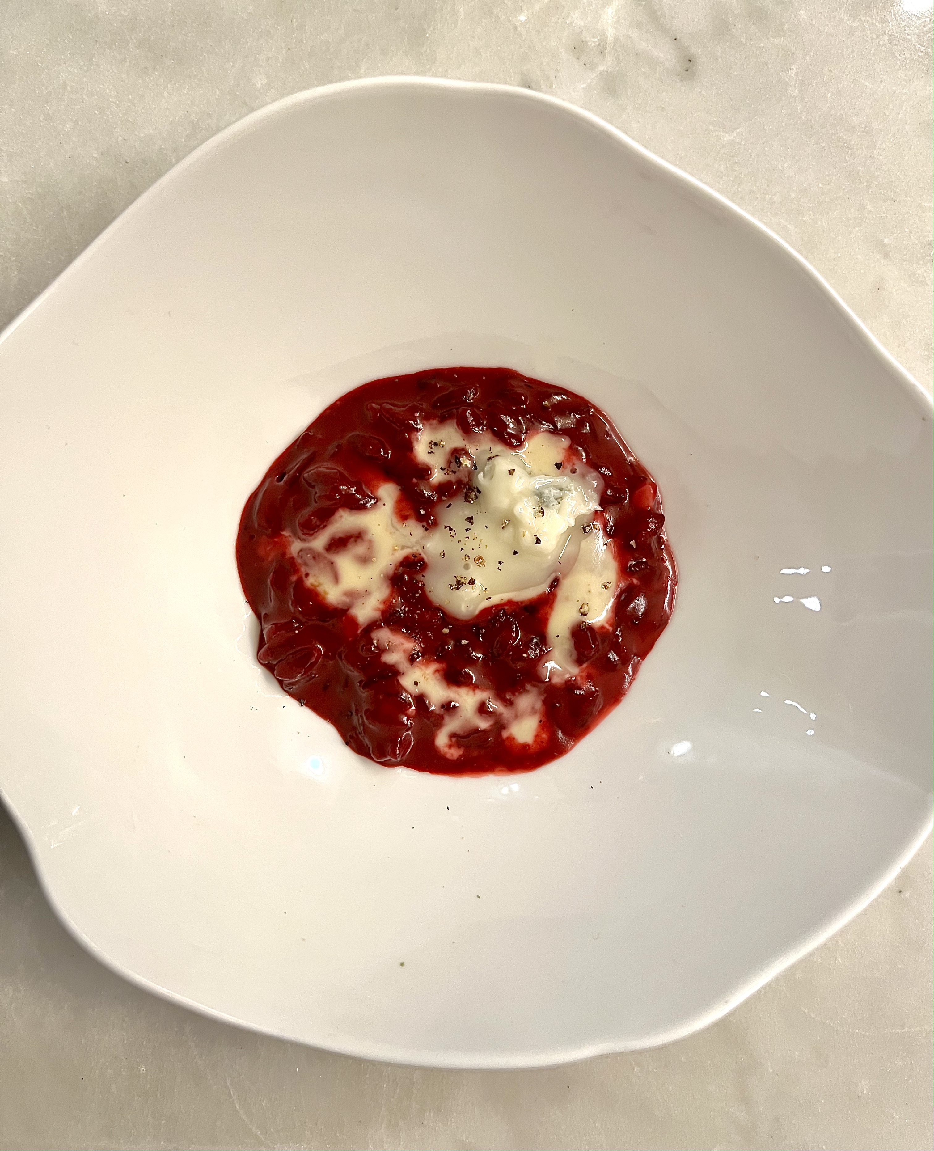 For the second time, Samuel takes us delicately with a creamy beetroot risotto wonderfully enriched with gorgonzola.