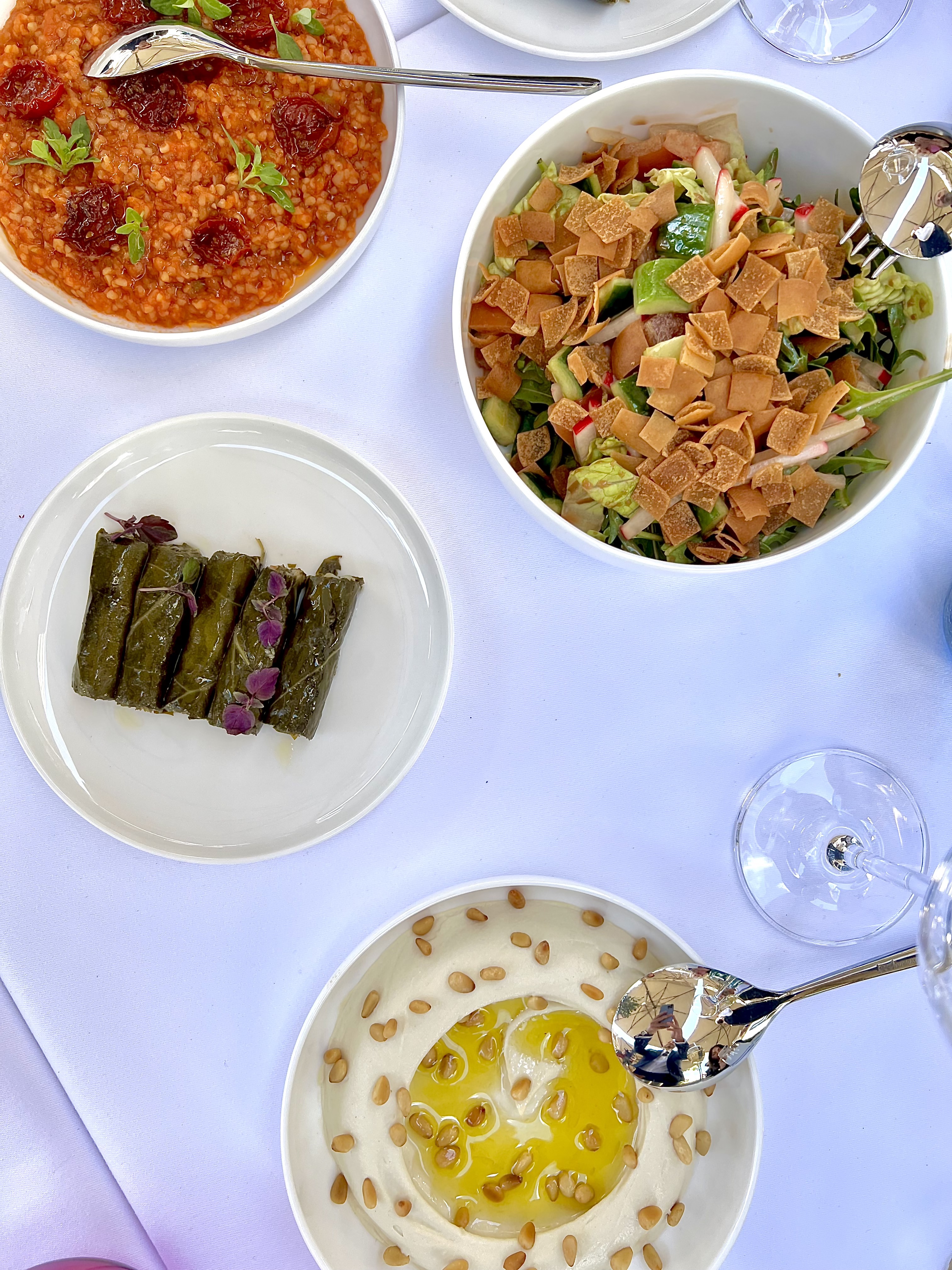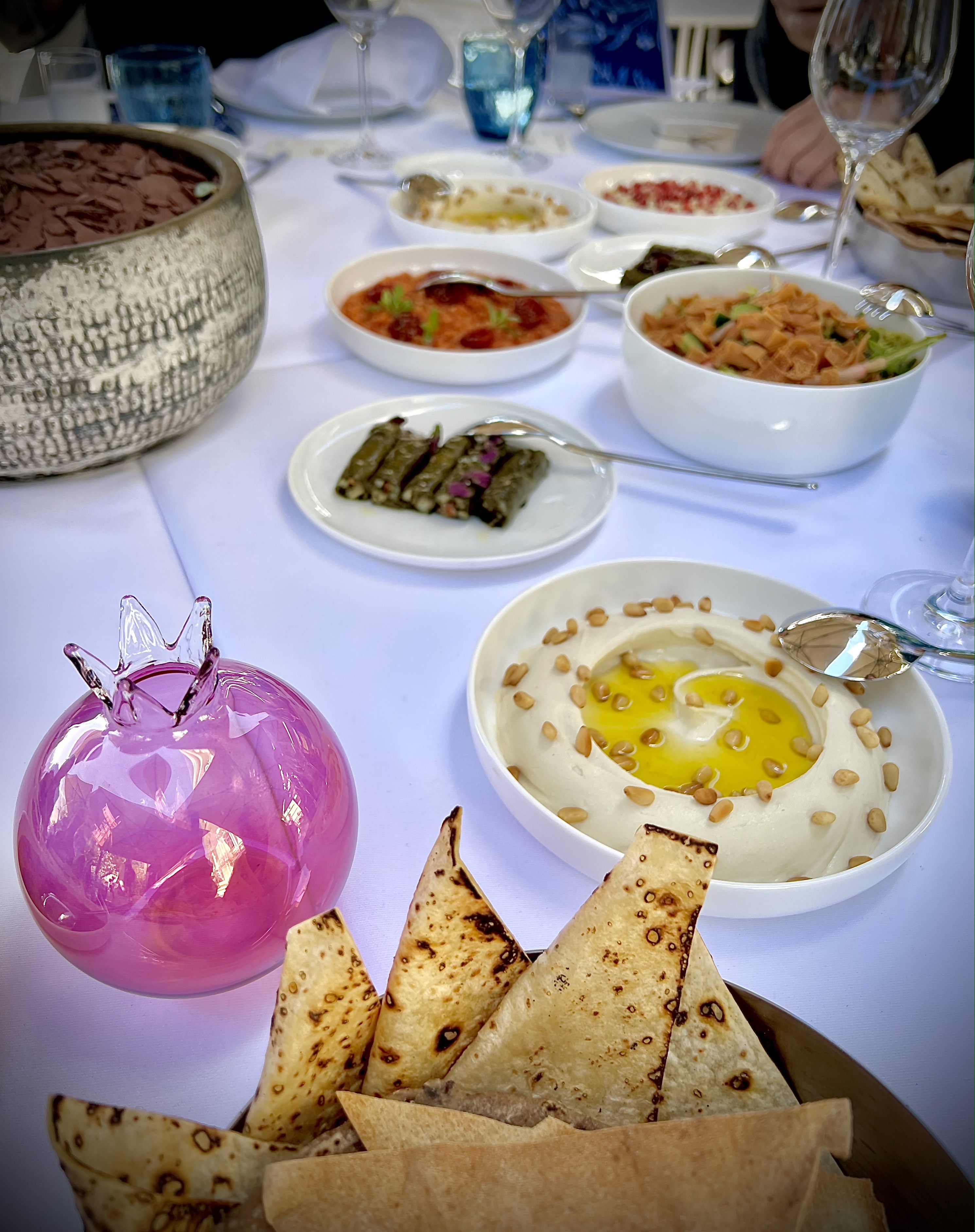 The wine list offers a small selection of Lebanese wines and high-end bottles from France.