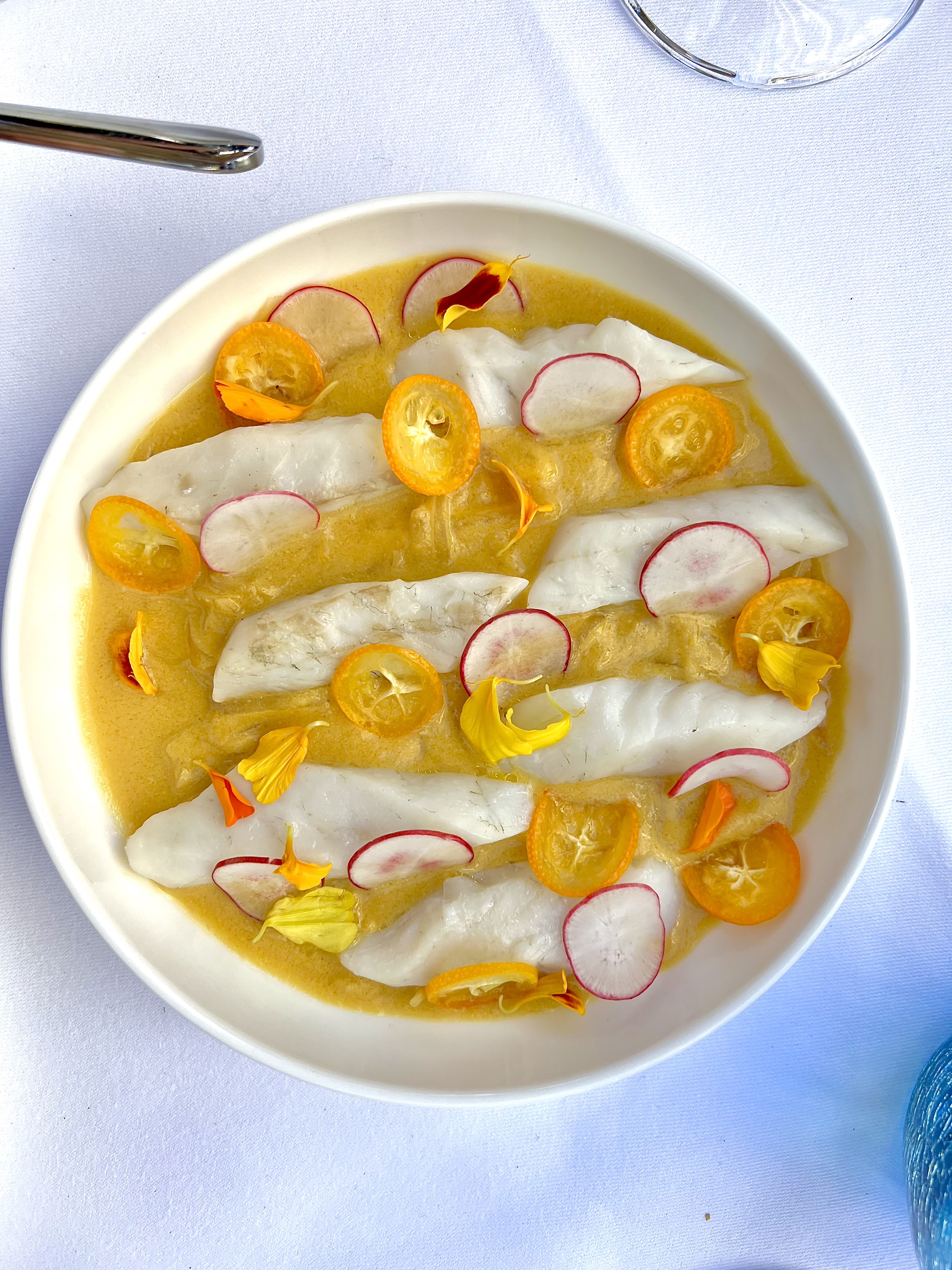 The Samak Tajine (sea bass fillet with citrus fruit and kumquat) served lukewarm turns out to be dizzying with delight.