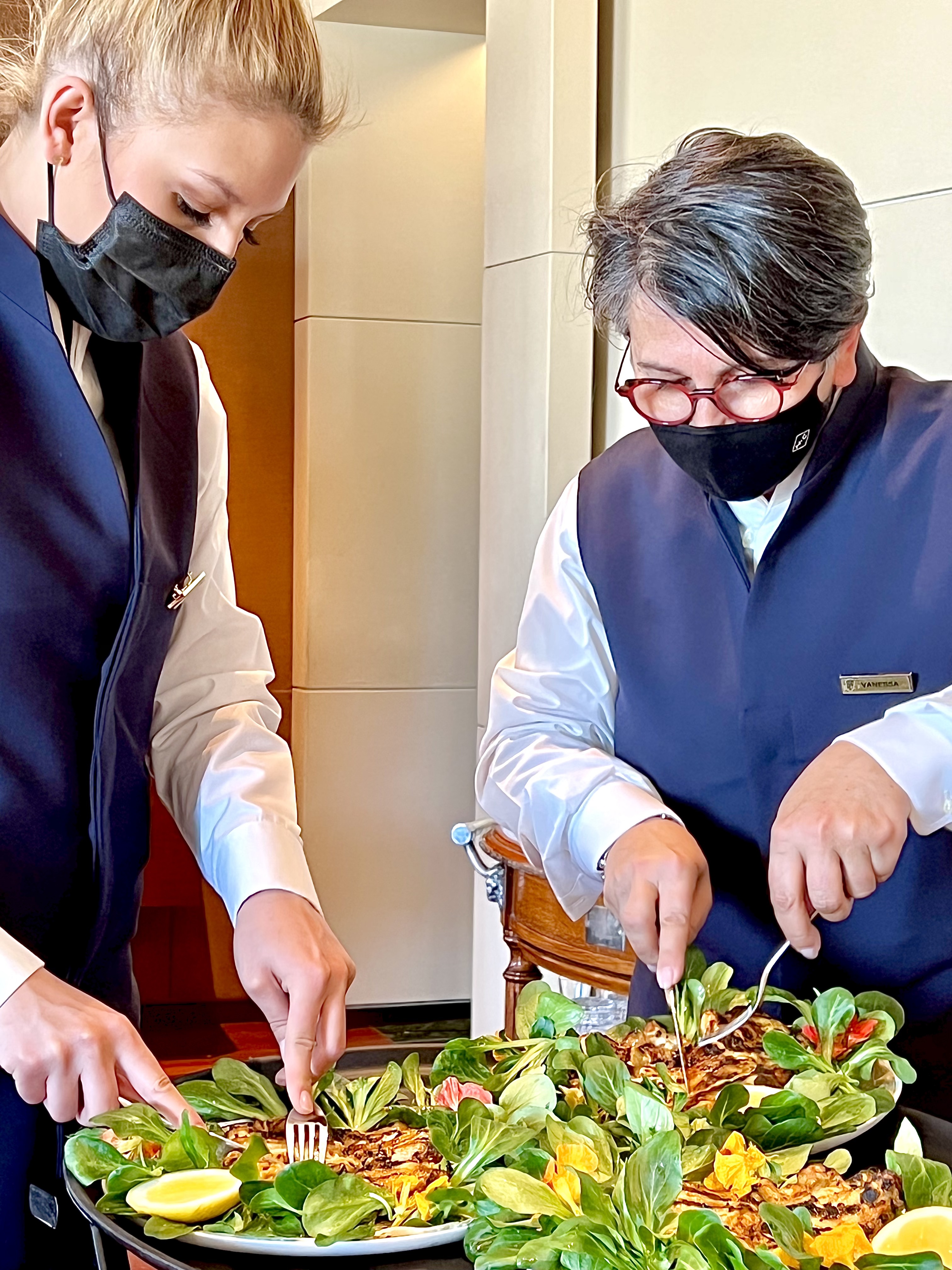 It is the young and talented Yasmina Hayek (Mireille’s daughter) with a brilliant career, who takes the reins of the Monegasque address. She begins to move towards medicine and science, but immersed in the world of the art of hospitality from her family, she changes paths and decides to take care of others through the pleasures of food and sharing. She trained at the Paul Bocuse Institute and with Michelin star chefs and world’s famous restaurants such as Mathieu Pacaud, Jean-François Piège and Geramium*** in Denmark. The mother and daughter have together imagined the menu with dishes specially created for Monaco to bring authenticity and tradition, with a more local vision in order to satisfy tastes by using products from the region, such as the Yalanji where the leaves vines are replaced by chard leaves or Samak Nayy (tangy sea bream carpaccio) or Siyyadiyeh (whole steamed sea bass stuffed with caramelized rice with onions and aromatic herbs).