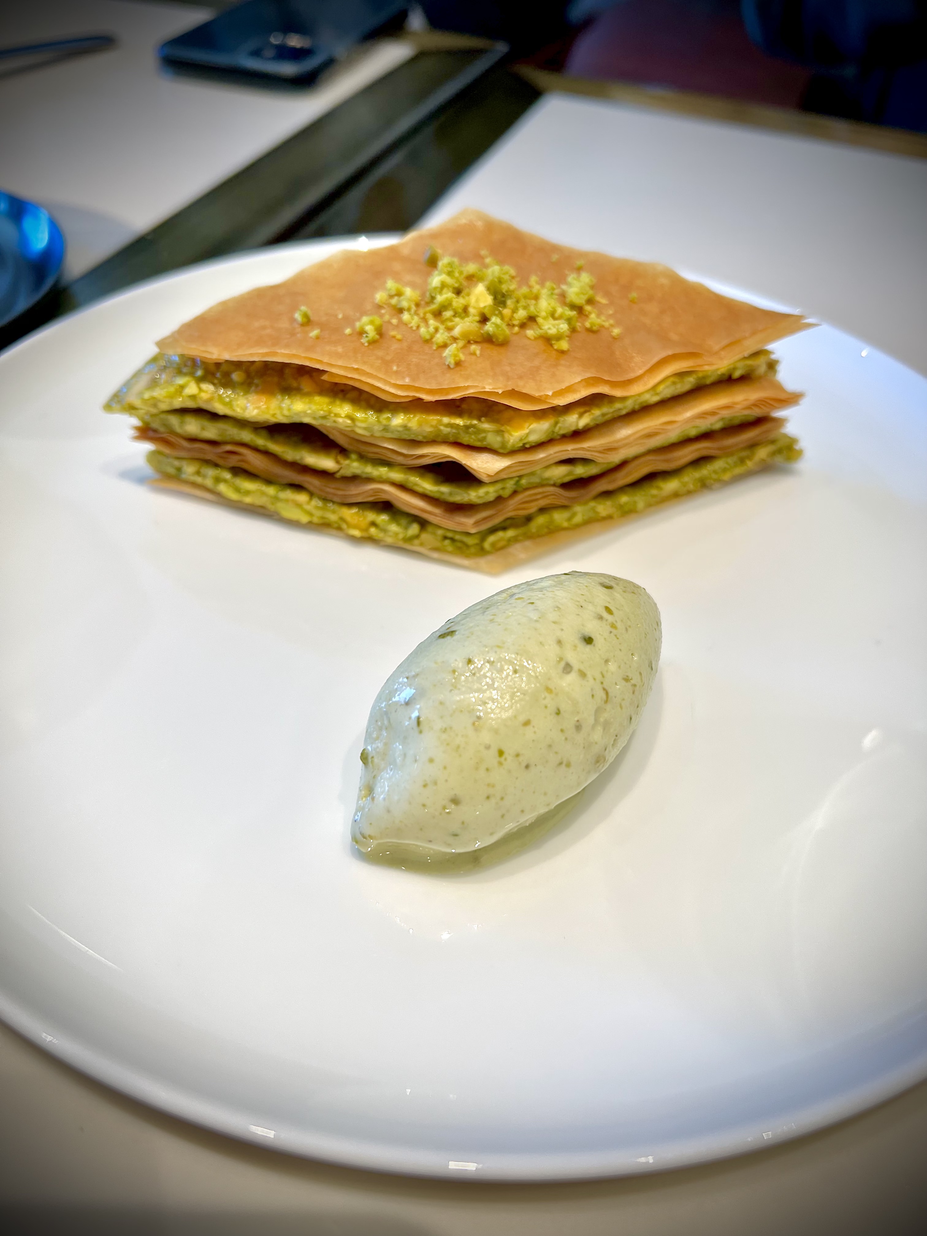 The sweets of the Helo are a balanced tribute without excess sugar to this much adored score. The Paris-Brest thus becomes Beirut Monte-Carlo with fresh date cream infused with black tea, the pistachio Baklava and its pistachio ice cream is airy and makes you crack with the truth of its flavor and the Nammoura Hamod is ideal freshness with its subtle Menton lemon semolina cake, lemon jam, lemon sorbet and candied lemons.