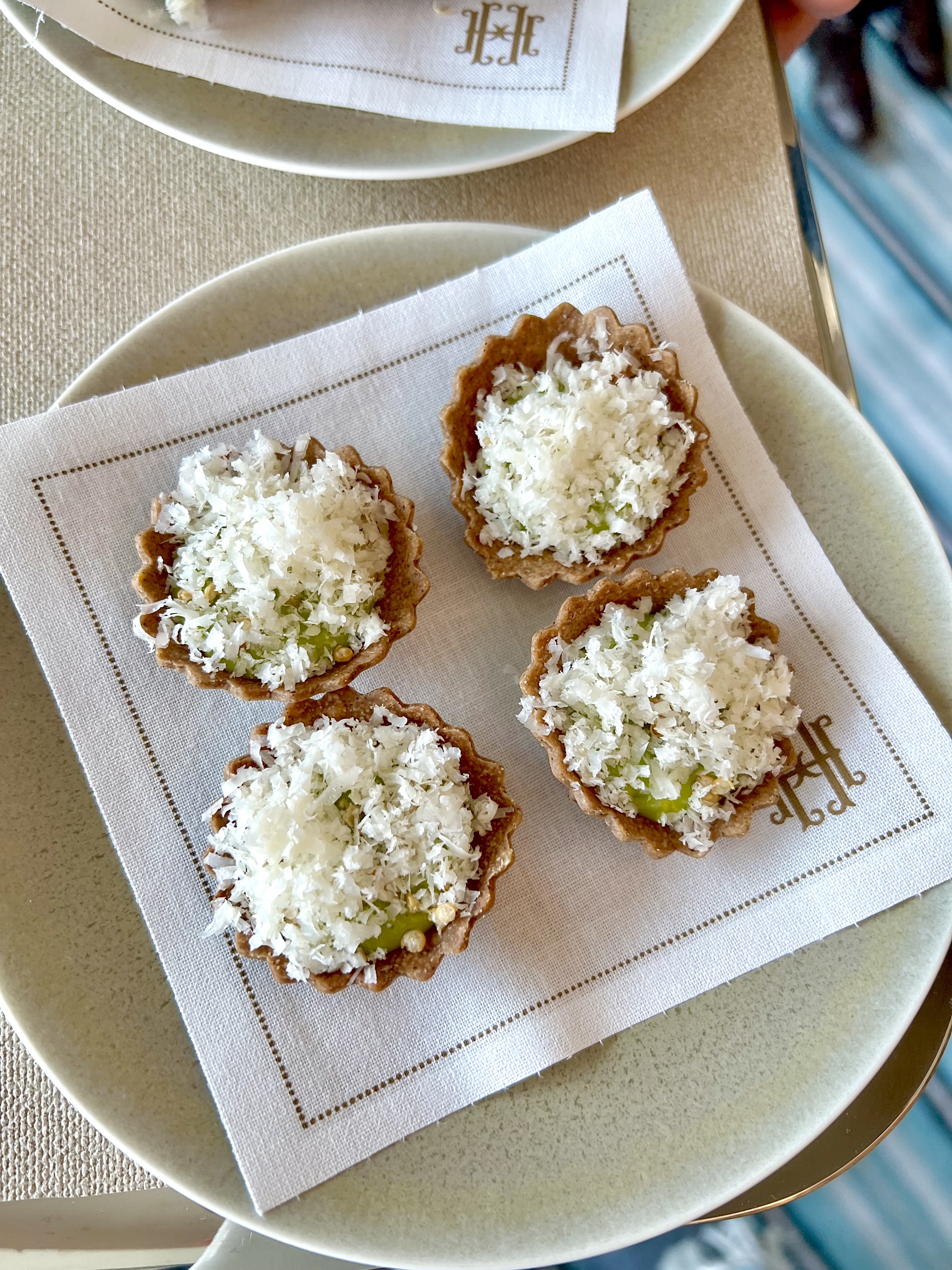 The buckwheat tartlet, sake cream, pike roe and parmesan made their debut and the barbajuans with marjoram flower and nettle gel (a delicious tradition in the Principality where each establishment offers its own version) follow closely this raising of the curtain of flavors.